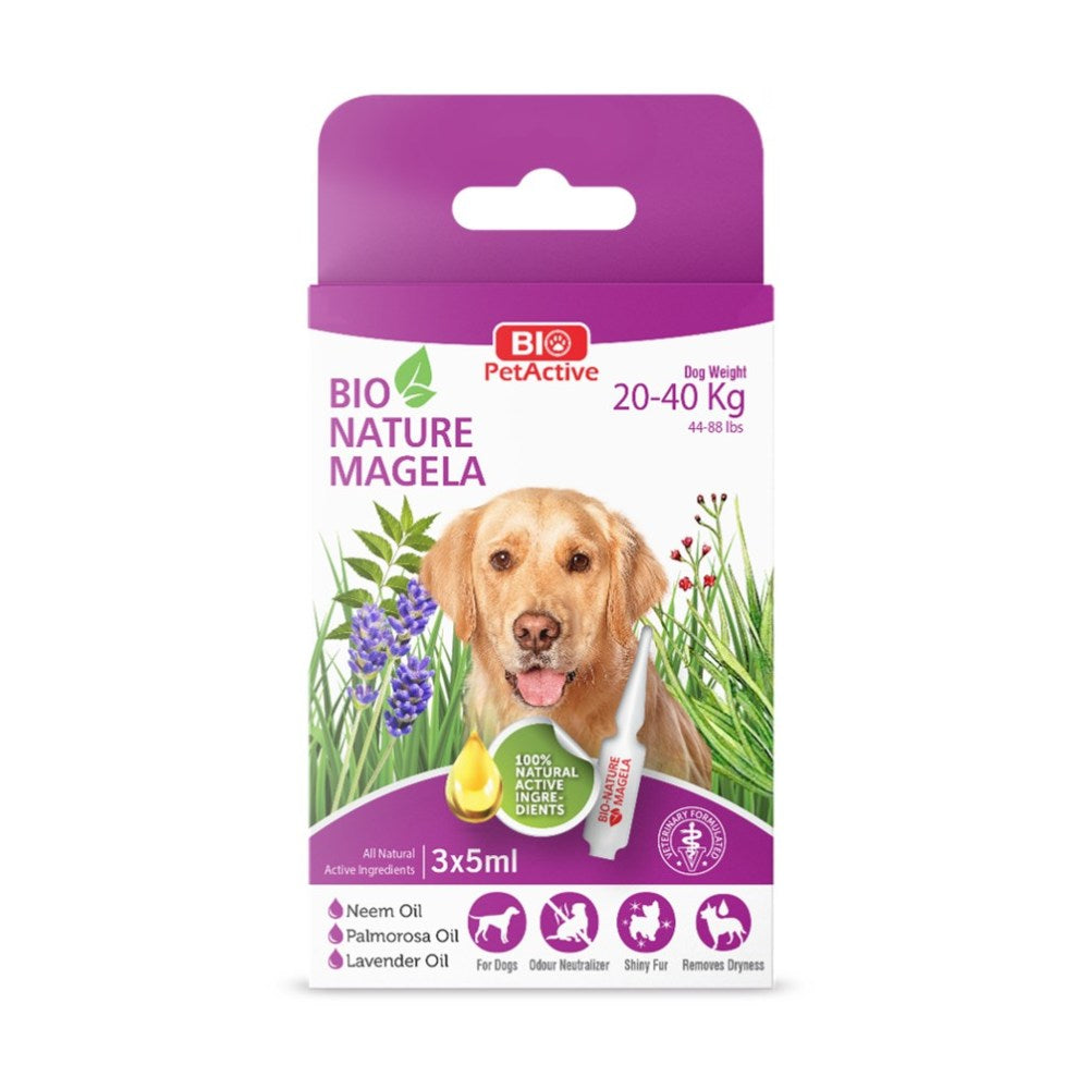 Bio Nature Magela is a spot-on solution formulated with a mixture of herbal essences and oils for dogs.