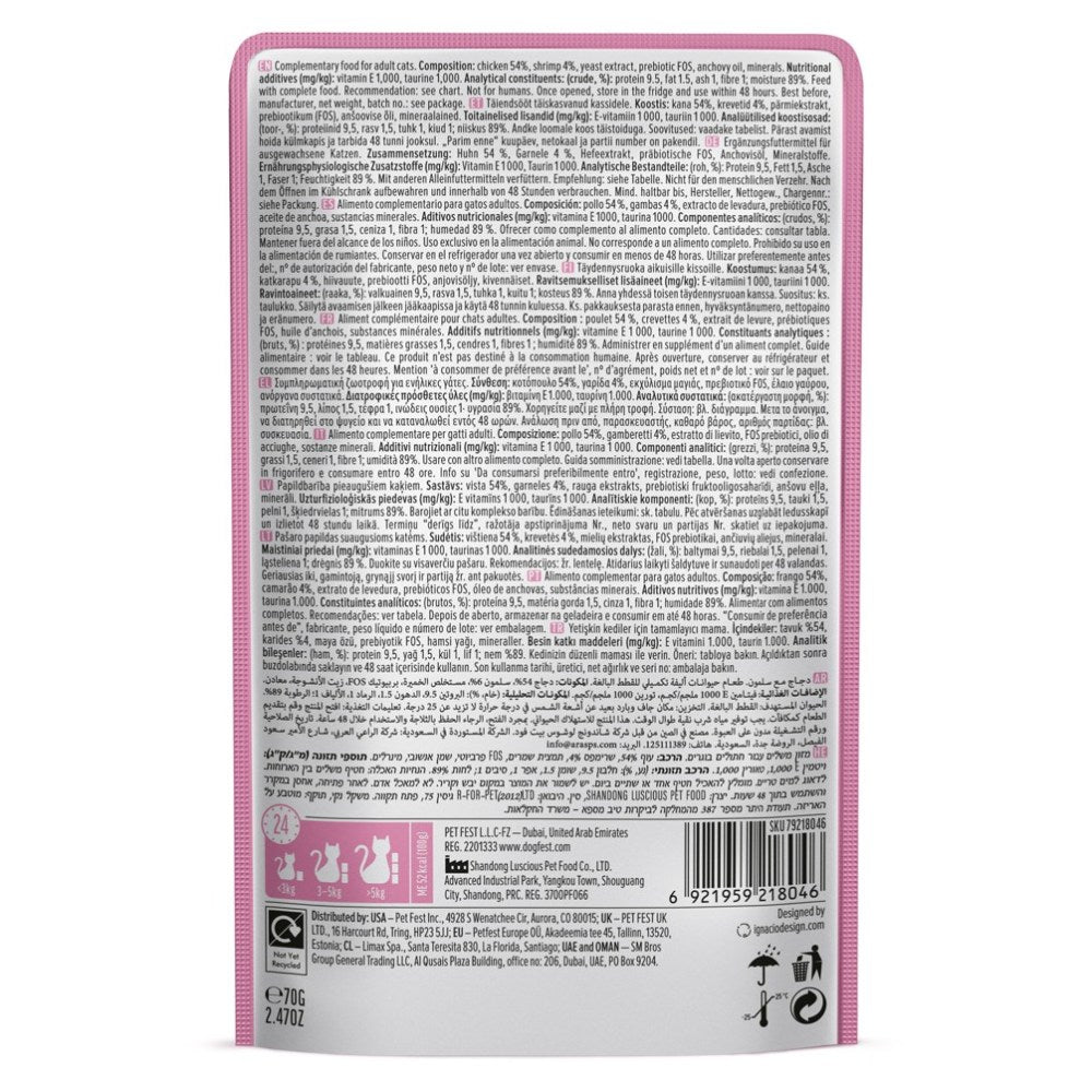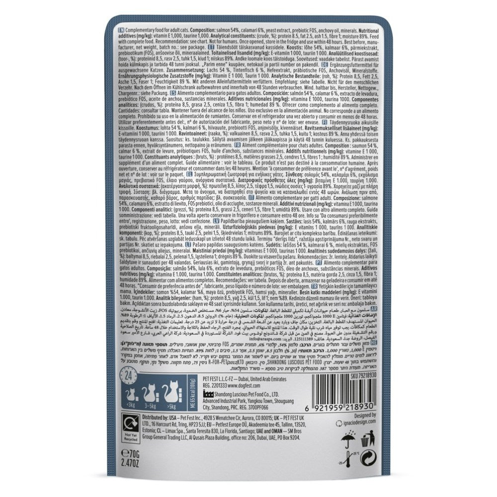 Guaranteed analysis, %: protein 10, fat 0.8, fiber 1, ash 1.5, moisture 89.