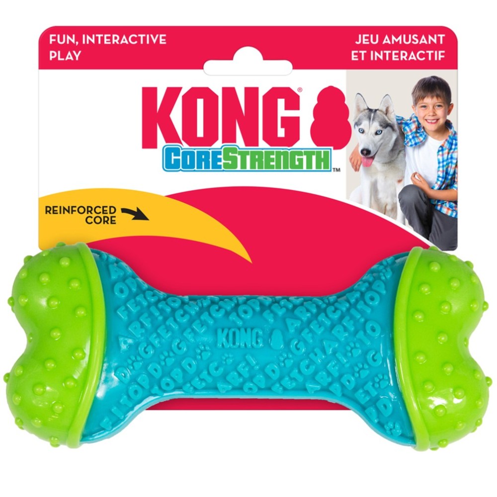 KONG CoreStrength is built to last and is sure to bring excitement while providing extended play sessions along the way. The durable KONG-crafted multilayered core stands-up to long-lasting chew sessions while meeting a dog’s natural chewing instincts. The reinforced layers within the core add extra toughness making it great for chewers. The exterior textured words add to the fun and have the added benefit of cleaning teeth and gums. Ideal for independent play and interactive toss and retrieve, KONG CoreStrength is sure to delight the most playful of dogs.