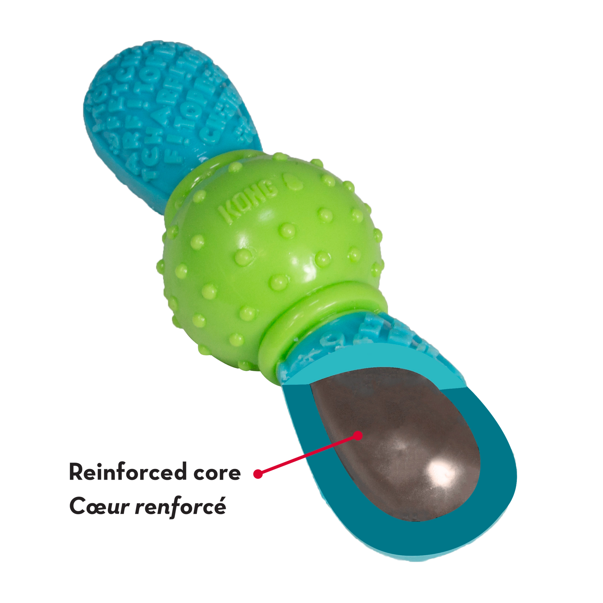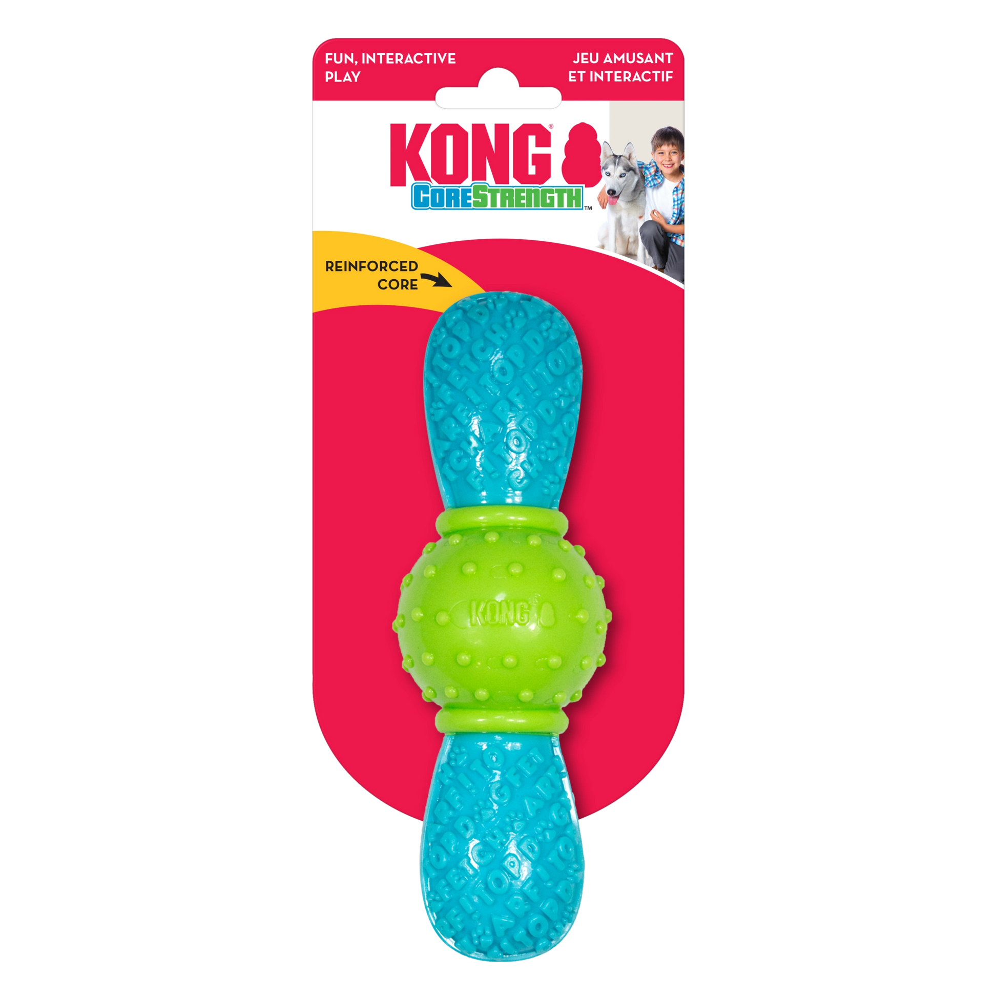 KONG CoreStrength is built to last and is sure to bring excitement while providing extended play sessions along the way. The durable KONG-crafted multilayered core stands-up to long-lasting chew sessions while meeting a dog’s natural chewing instincts. The reinforced layers within the core add extra toughness making it great for chewers. The exterior textured words add to the fun and have the added benefit of cleaning teeth and gums. Ideal for independent play and interactive toss and retrieve, KONG CoreStrength is sure to delight the most playful of dogs.