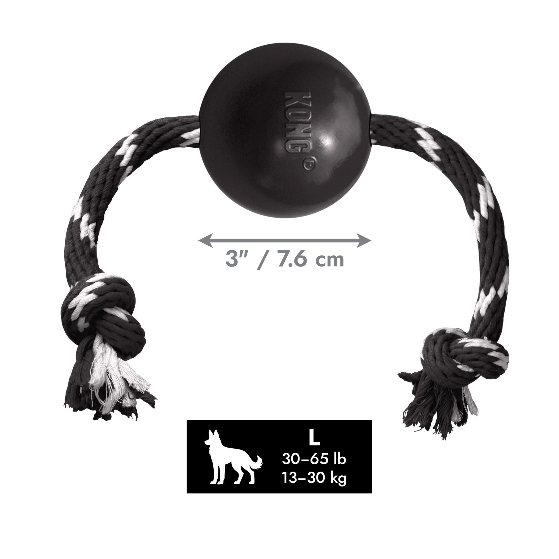 Interactive play gets energized with a durable rubber ball and cotton rope made from KONG Extreme –the most durable rubber formula is sure to make play time last.