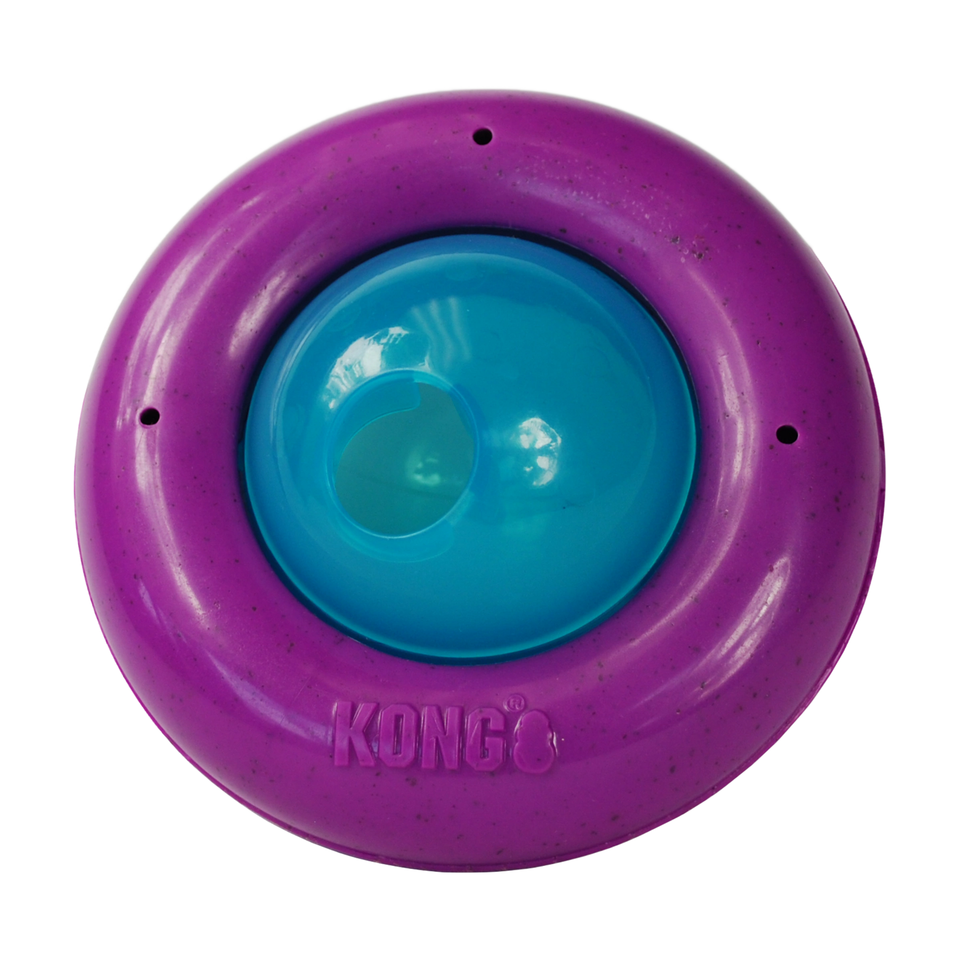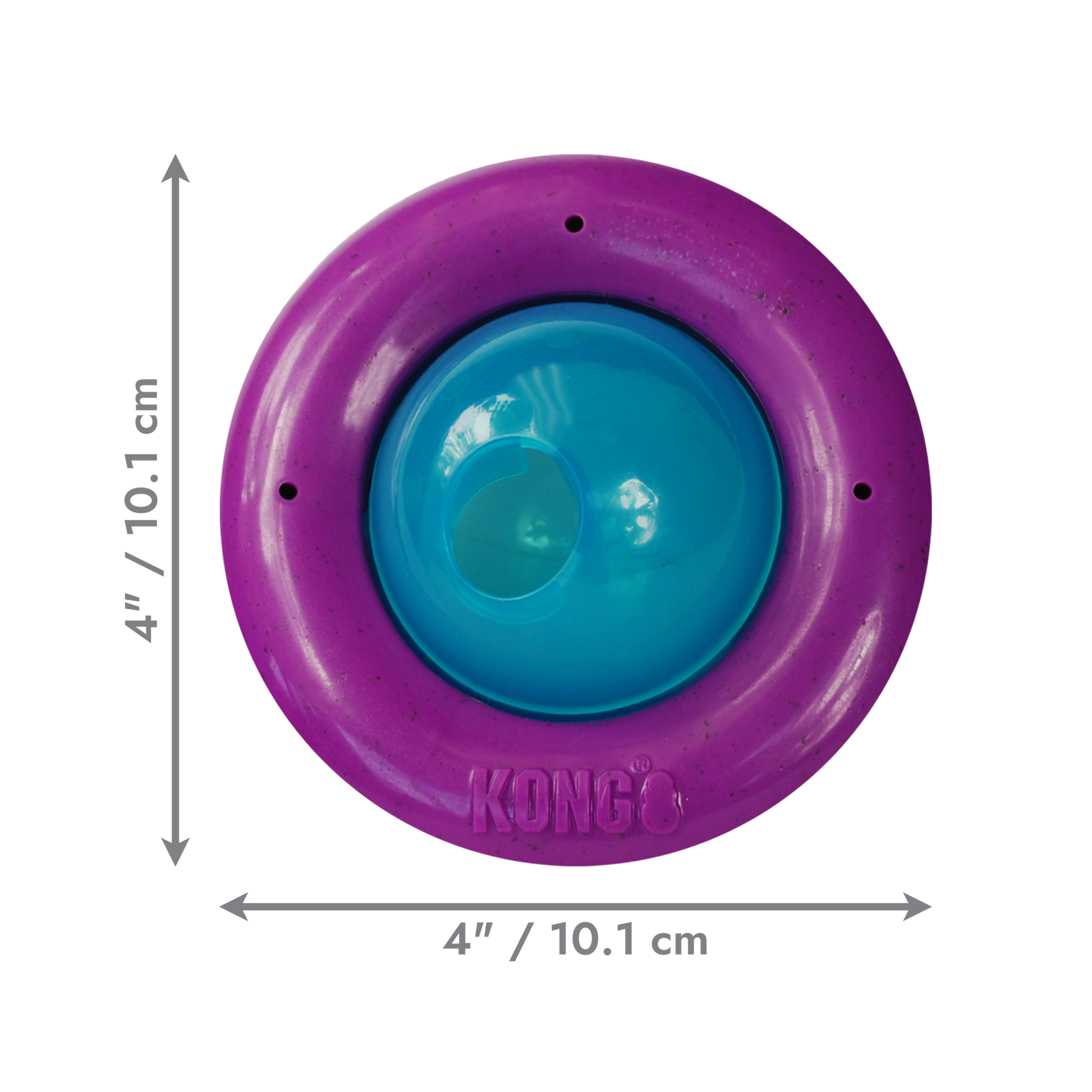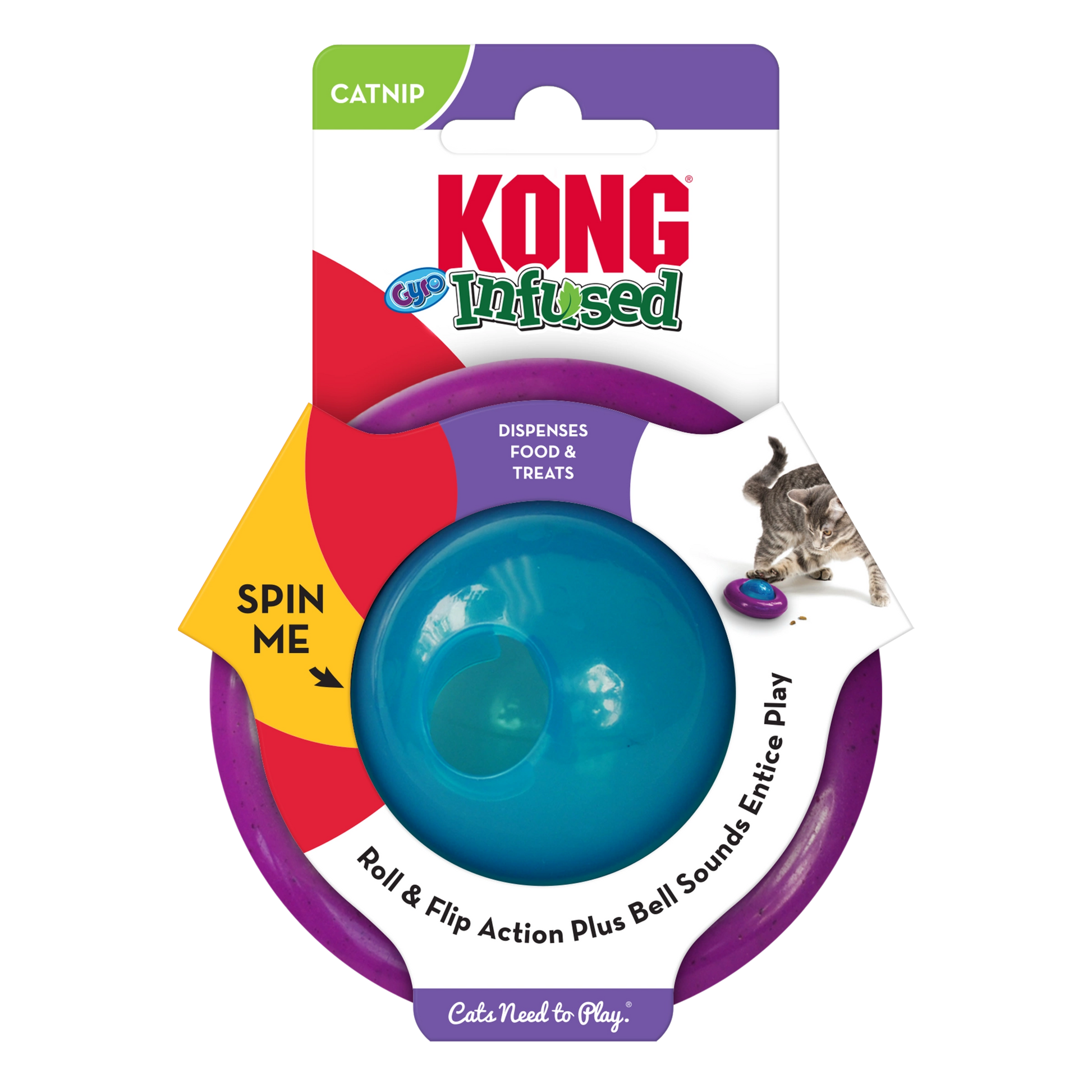 The KONG Cat Gyro is the ideal food and treat dispenser that has a roll and spin action that, engages cats’ in a mentally stimulating food puzzle. When batted, it flips over, sparking cats’ stalking and pouncing instincts. Infused with potent KONG North American Premium Catnip oil, it also features a bell in the outer ring both combining to extend play sessions. Its removable middle container is easy to fill and clean. Holds 1/3 cup of food, making it an ideal bowl replacement.