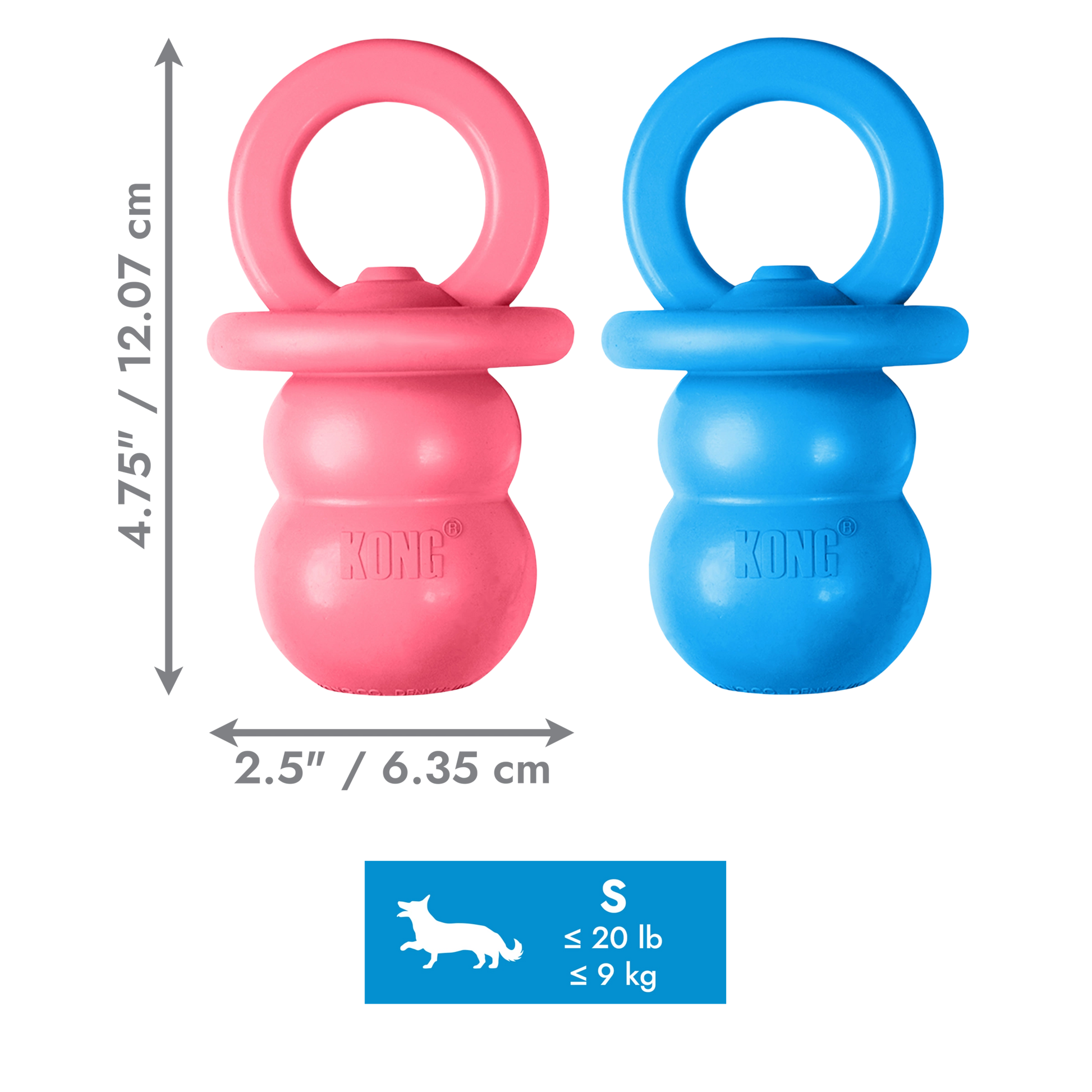 - Unique pacifier shape and soft KONG Puppy Rubber designed to soothe sore teeth and gums