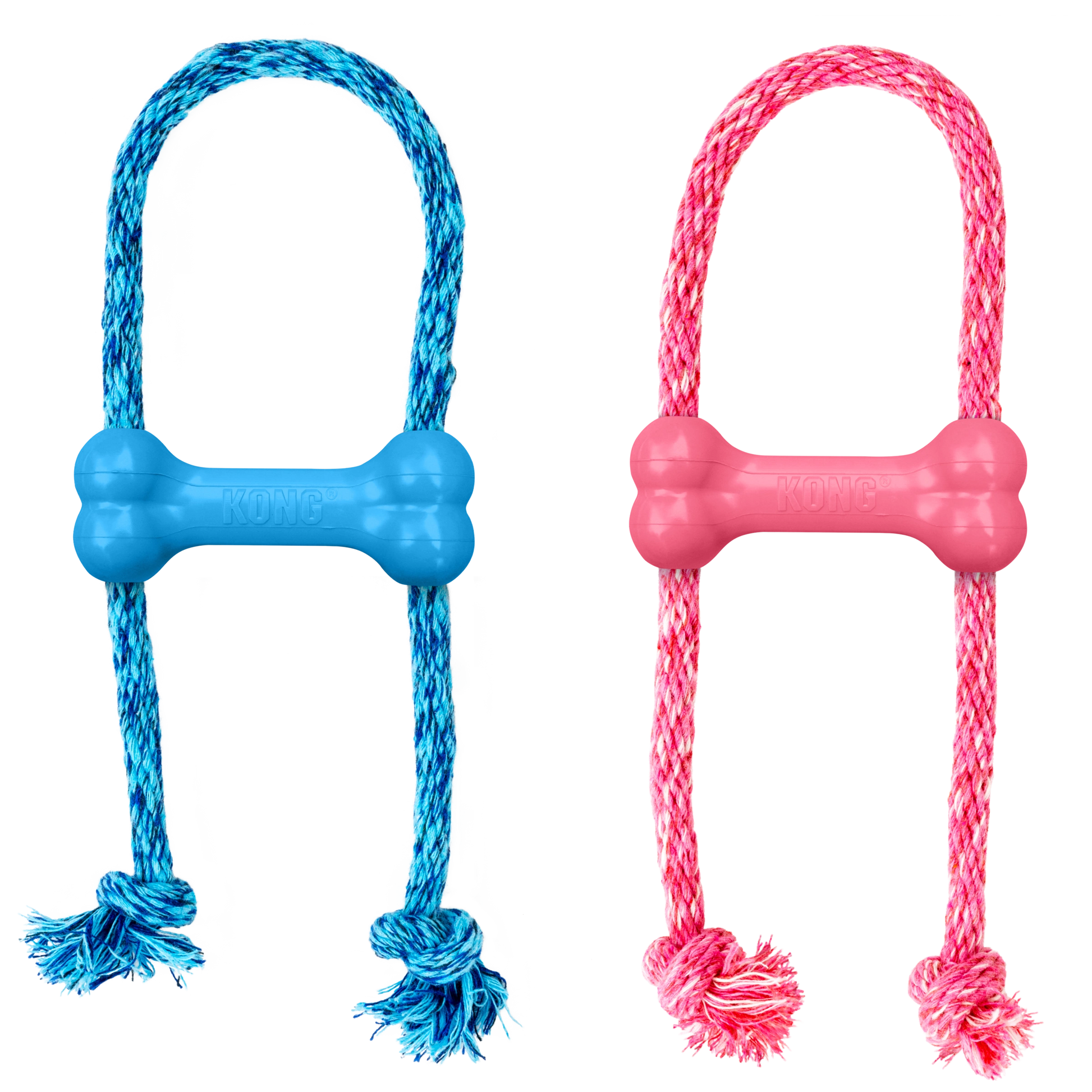 - Durable KONG Puppy Rubber Bone with cotton rope for beginning chewers