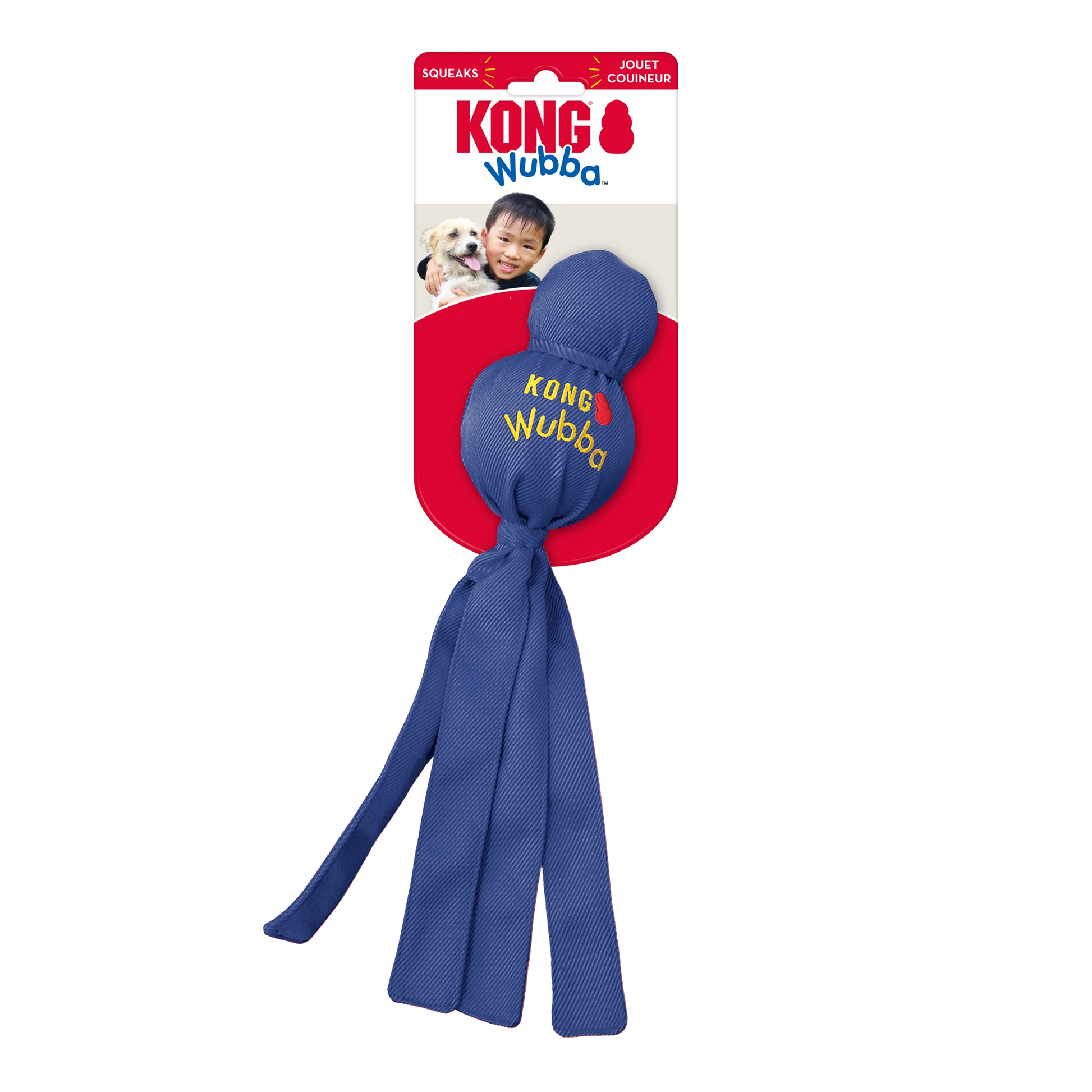 The KONG Wubba™ is a fun, interactive tug and toss toy that is great for interactive or solo play. It’s long floppy tails are ideal for shaking and tugging instincts as well as games of fetch. A durable reinforced nylon exterior comibines with unique ball shapes for play sessions that last longer. Dogs love to squeak the Wubba™ and add to the fun by shaking the flapping tails back and forth making every game different from the next.