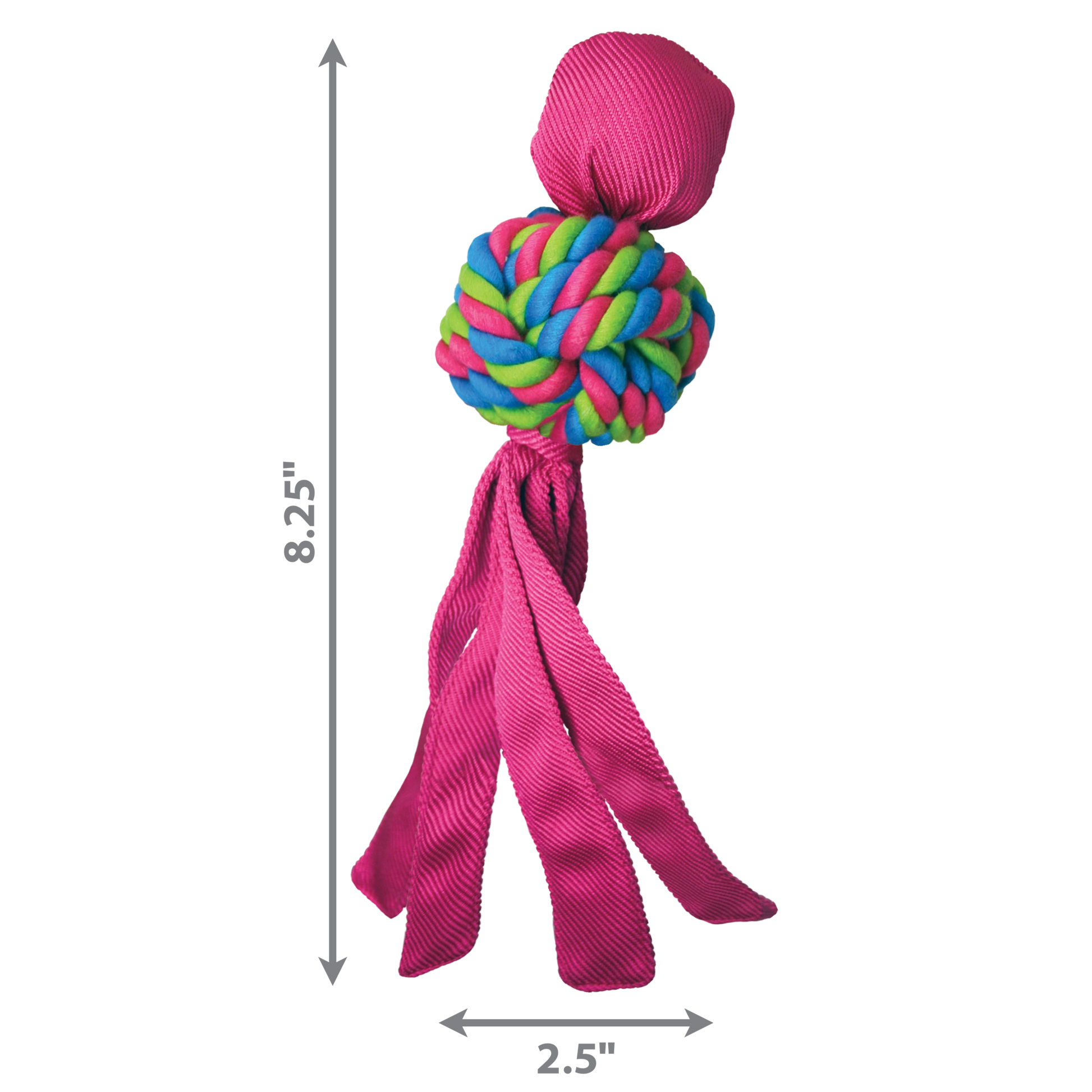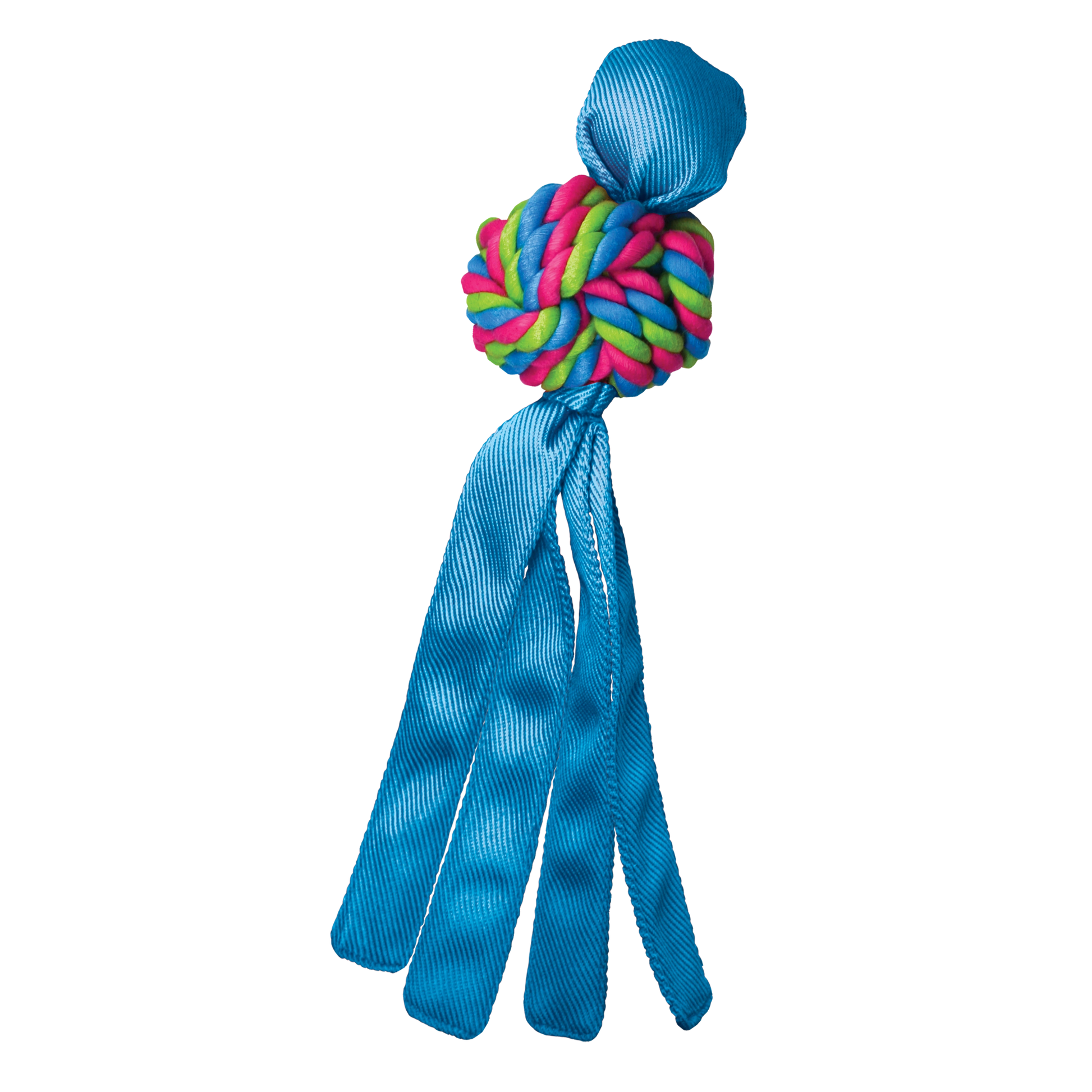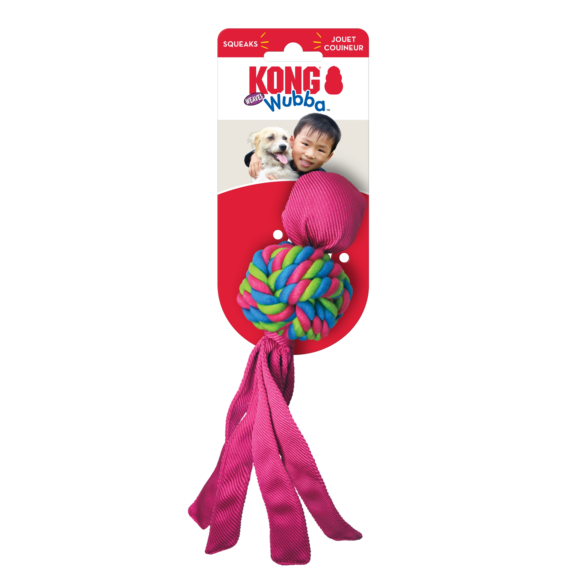 Here’s a new twist on an old favorite. KONG Wubba Weaves feature a twist-knot, cotton ball of rope that cleans teeth while dogs play. The Wubba signature nylon tails are still there, making the toy ideal for games of fetch. The added squeaker on top will keep dogs coming back again and again.